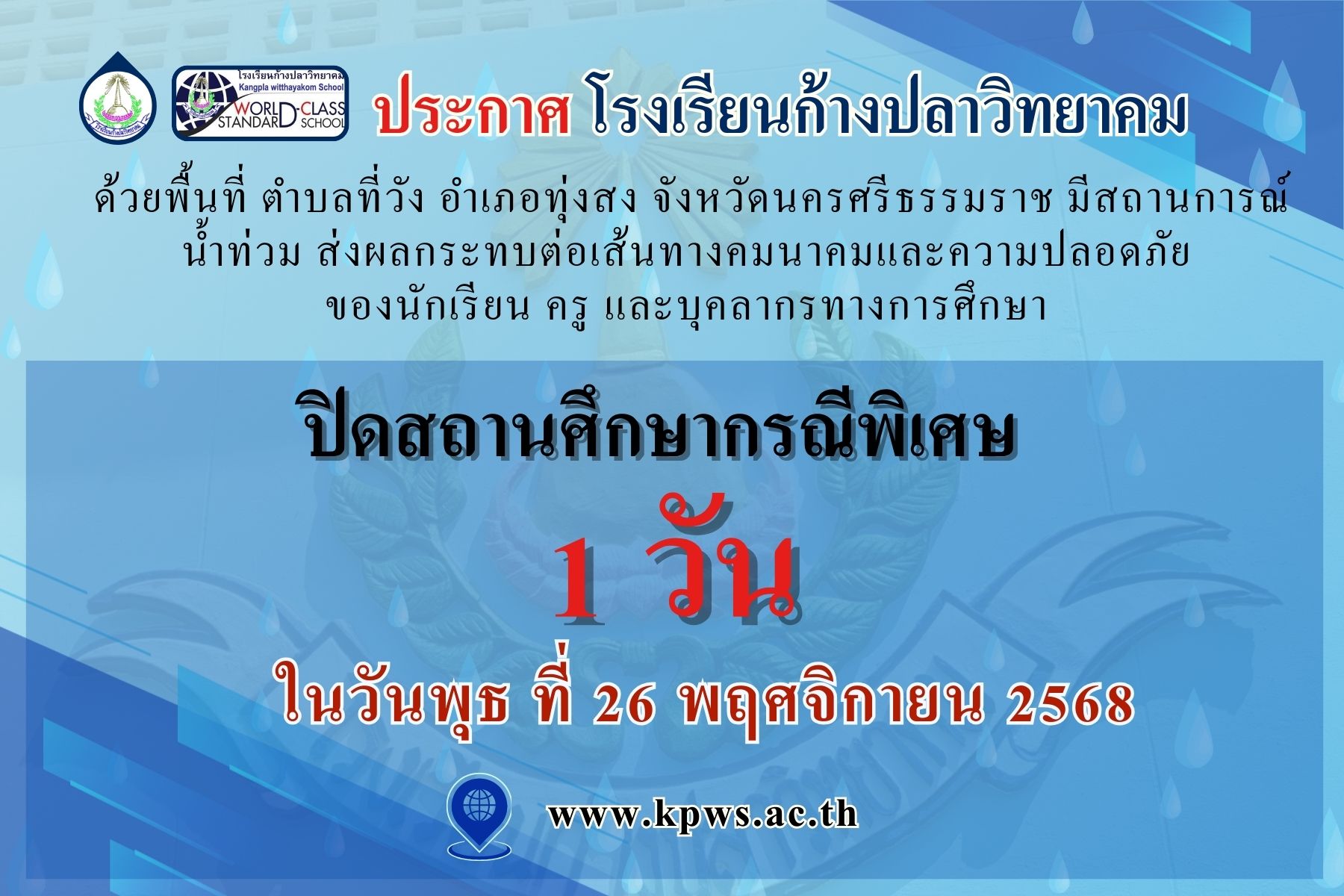 ประกาศหยุดเรียน กรณีพิเศษ วันพุธ ที่ 26 พฤศจิกายน 2568