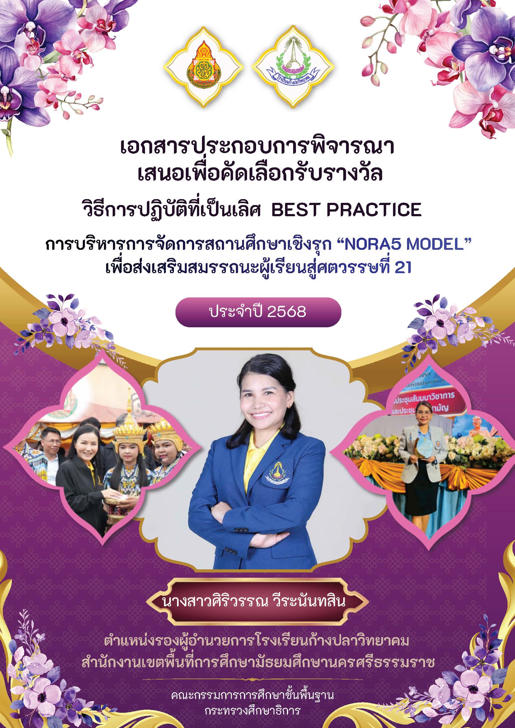 การบริหารสถานศึกษาส่งเสริมความรู้คู่คุณธรรม นำพาสถานศึกษาสู่ความเป็นเลิศ ด้วย "NORA MODEL" โดยบูรณาการศาสตร์สองพระราชา |