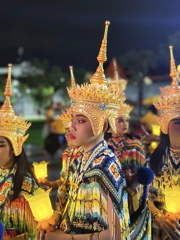 นักเรียนเข้าร่วมแสดงโนราเฉลิมพระเกียรติงานมหรสพสมโภช เฉลิมพระเกียรติพระบาทสมเด็จพระเจ้าอยู่หัว เนื่องในโอกาส พระราชพิธีมหามงคลเฉลิมพระชนมพรรษา ๖ รอบ